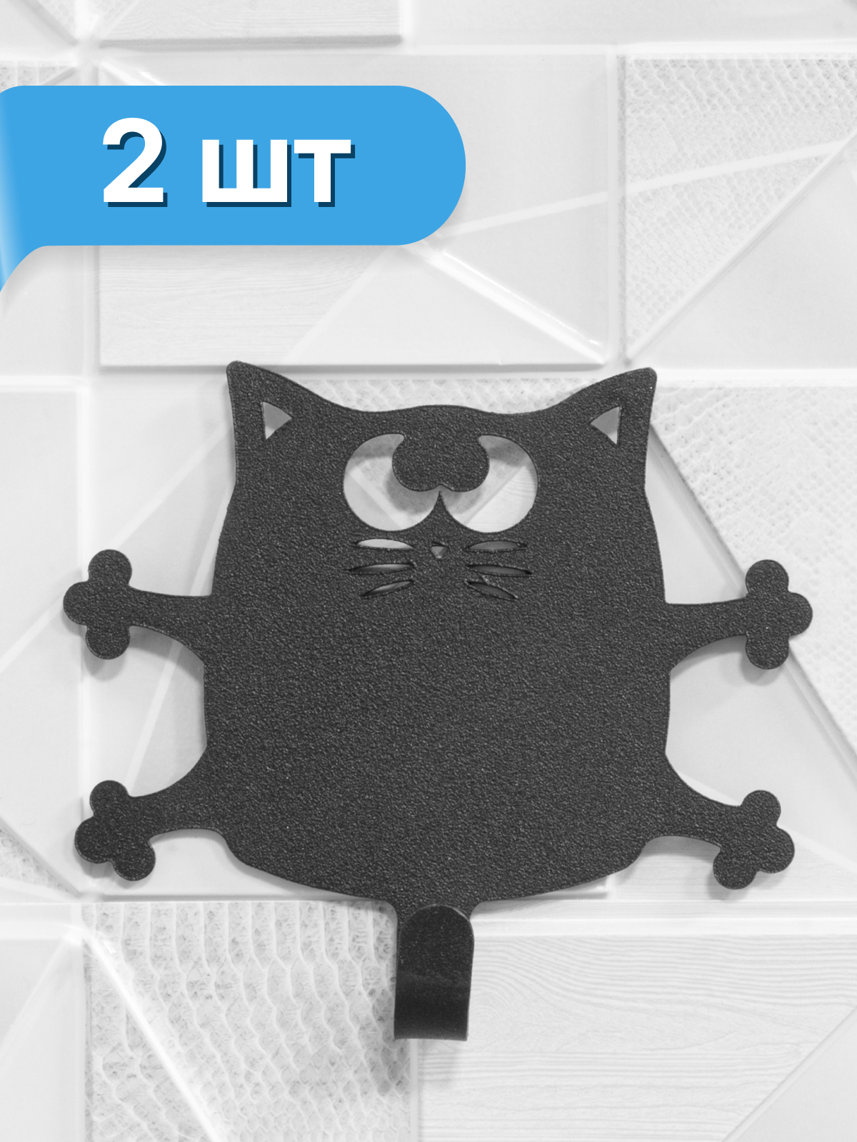 Крючок "Кот Кузя" 2 шт. для ванной комнаты, черный (сталь)