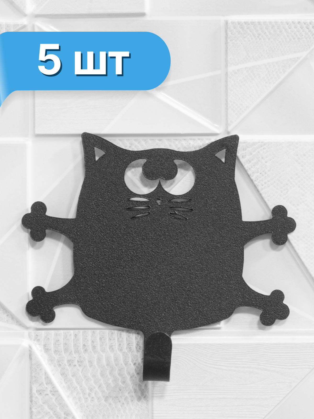 Крючок "Кот Кузя" 5 шт. для ванной комнаты, черный (сталь)